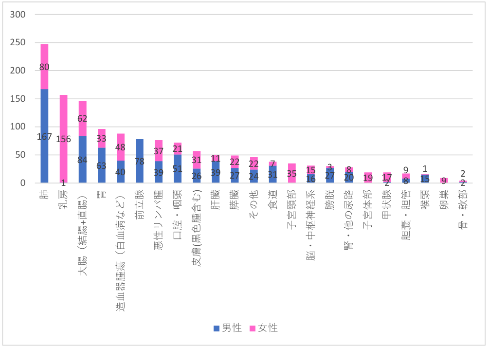| 皮膚(黒色腫を含む) | 57 | 26 | 31 |