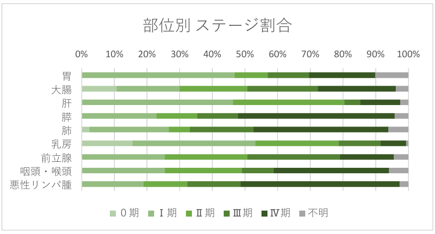 | 部位 | 計 | 0期 | Ⅰ期 | Ⅱ期 | Ⅲ期 | Ⅳ期 | 不明 |