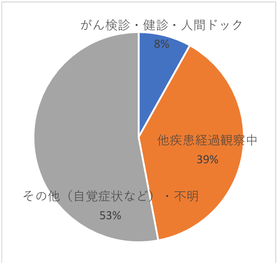 他疾患経過観察中:別の疾患で受診中に、実施された検査などで「がん」が偶然発見された