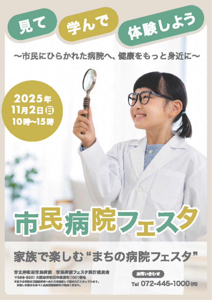 日時:2025年11月2日(日)10:00〜15:00 場所:市立岸和田市民病院 入場:無料