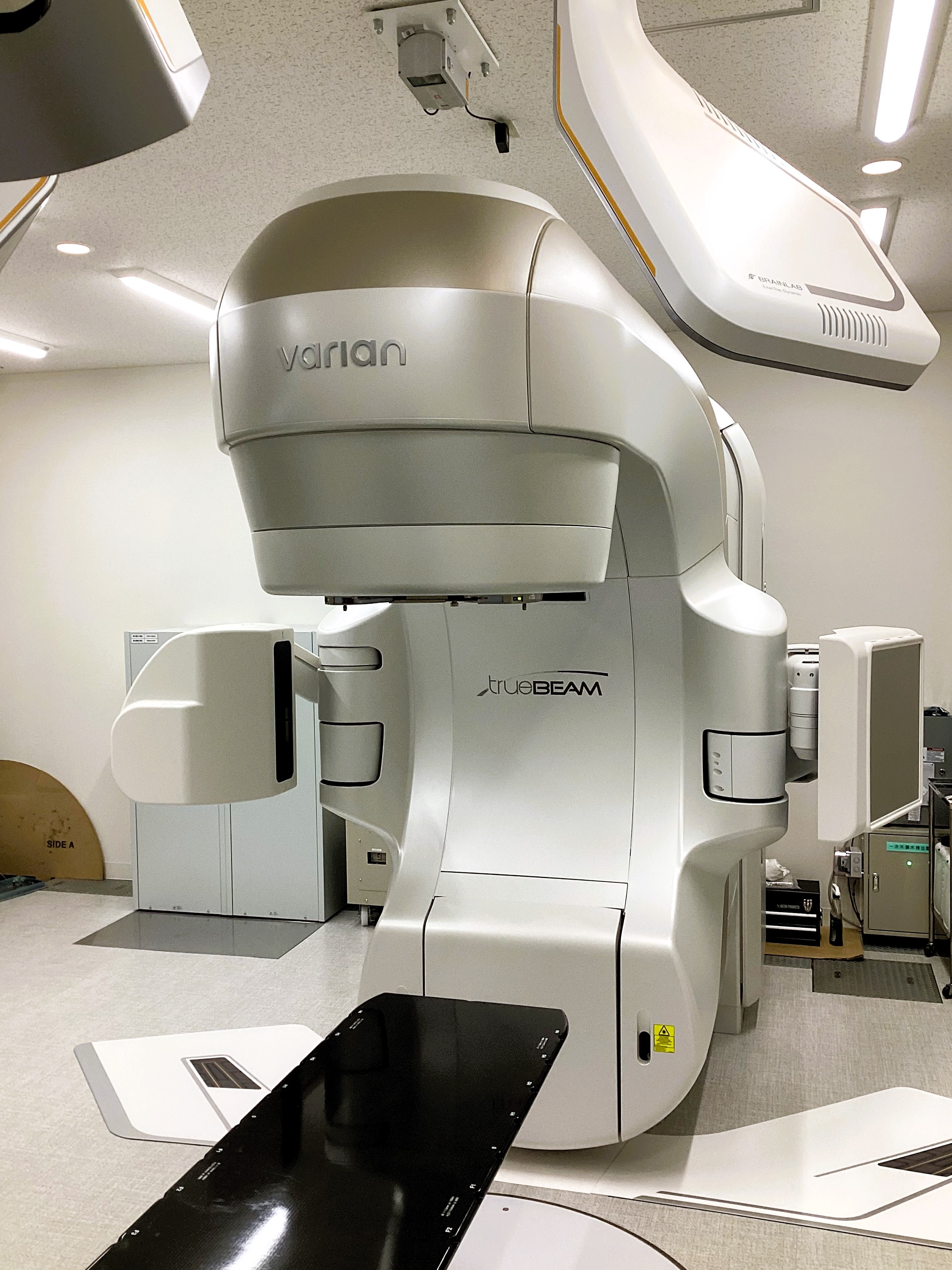 リニアック(高エネルギー放射線治療装置)を用いて、身体の外から病変部を狙って放射線を照射します。放射線治療専門医による診察の後、CTシミュレーション(CT撮影)を行い、撮影した画像をもとに治療計画を作成します。そして、翌日から数週間以内で治療開始となります。当院では、画像誘導放射線治療(Image-Guided Radiation Therapy:IGRT)、脳や肺の定位放射線治療(Stereotactic Radiation Therapy:SRT)、強度変調放射線治療(Intensity-Modulated Radiation Therapy:IMRT)といった高精度な放射線治療も行っています。